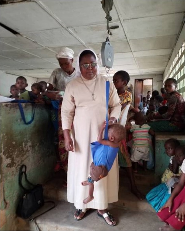 La Hermana Godelieve pesando a un niño |