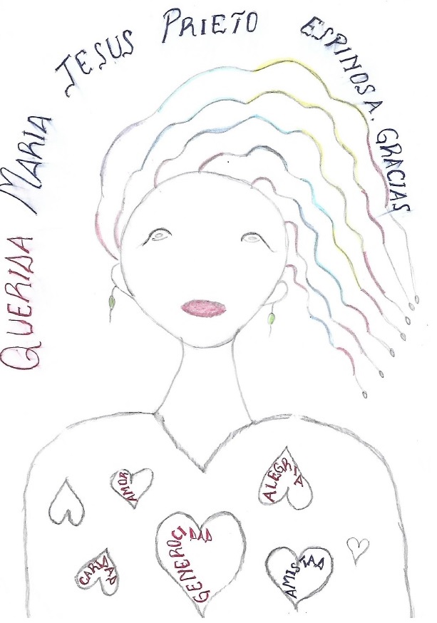 Dibujo de los niños dando las gracias a la coordinadora de ASY Mª Jesús Prieto |
