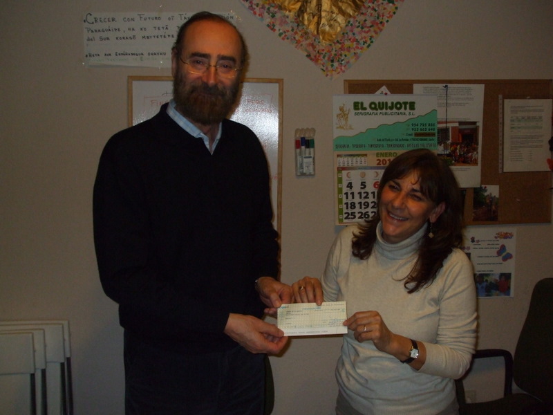El 8 de febrero de 2010, el Presidente de Acción Solidaria Ya! hizo entrega a la Presidenta de Crecer con Futuro (CcF) Dña. Encarnación Vega, en la sede de esta organización, de un cheque por importe de 4.000 €, cantidad que ASY, se había comprometido a aportar para la compra del camión de recogida de materiales reciclables destinado a la comunidad del Basural de Encarnación (Paraguay). Así mismo, ambos Presidentes firmaron el documento de entrega y recepción de la cantidad citada, como cumplimiento del compromiso de colaboración de ASY con Crecer con Futuro. |