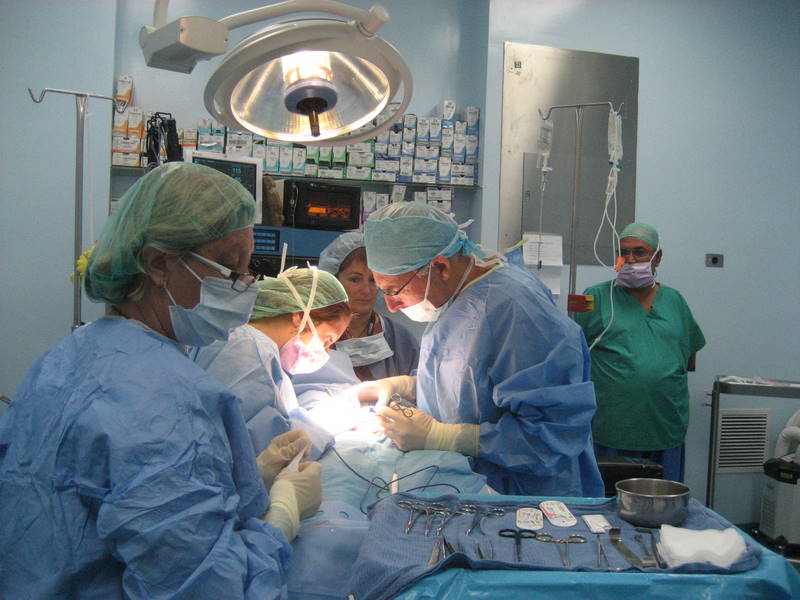 Parte del equipo médico español que se ha desplazado a Antigua en junio de 2011. Patricio Llamas (cirujano y coordinador del grupo), Mª Ángeles Monteagudo (anestesista), Domingo Bernabeu (enfermero), Montse Malo (enfermera) y Reme Pérez (enfermera) |