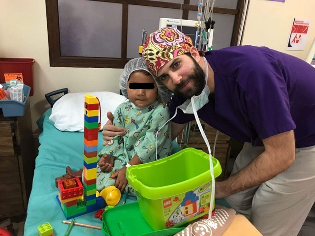 Uno de los cirujanos con la pequeña paciente |