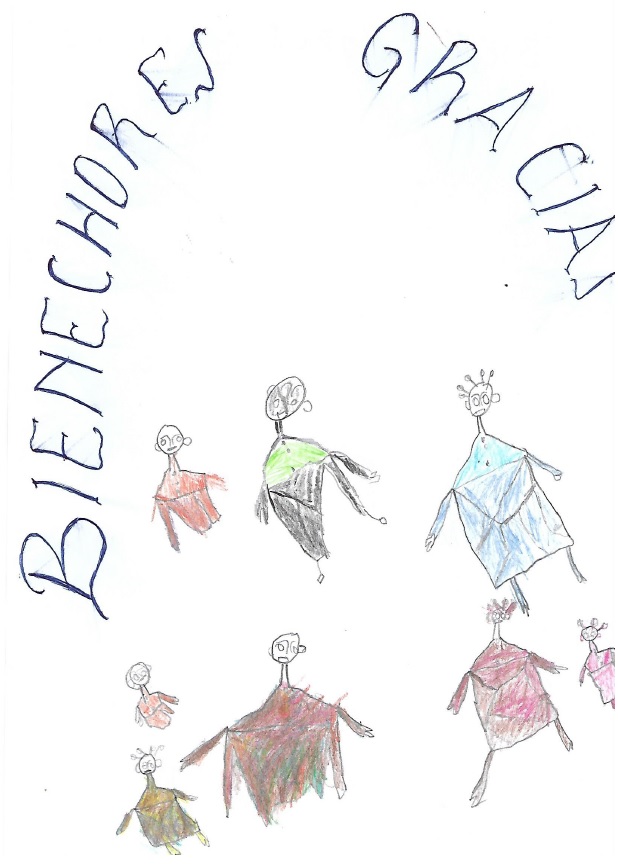 Dibujo de los niños dando las gracias a la coordinadora de ASY Mª Jesús Prieto |