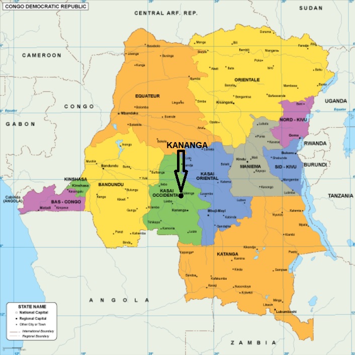 Ubicación de Kananga en la R. D. del Congo |