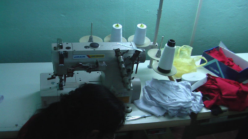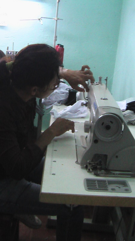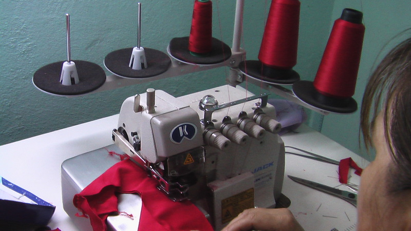 Confeccionando algunas prendas de vestir en el costurero |