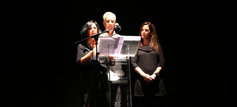 María Jesús Prieto (Presidenta de ASY), Javier Prado (miembro de ASY) y Beatriz Castilla (responsable de "Enseñar para vivir"), presentando las ONGs y los proyectos apoyados |