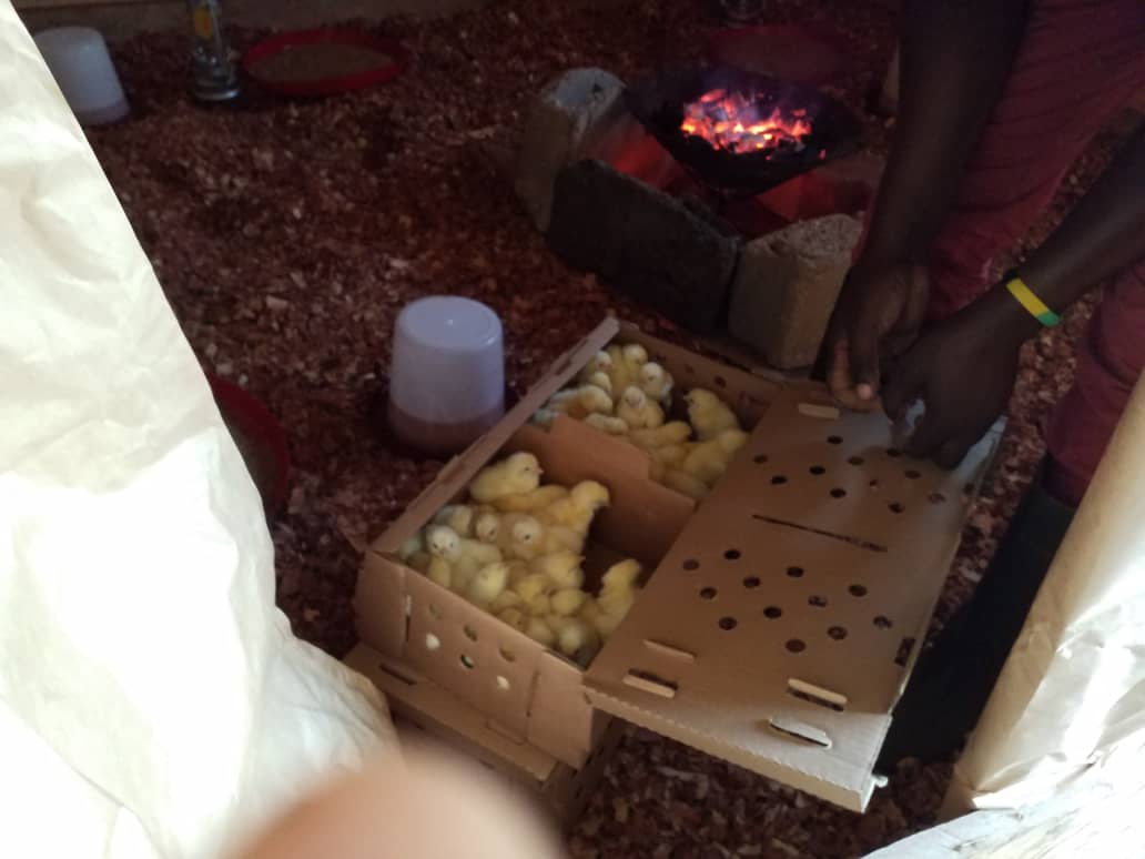 Proporcionando algo de calor a los pollos |