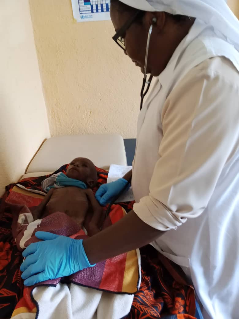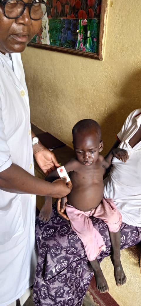 Realizando medidas de los pequeños para analizar su grado de desnutrición |