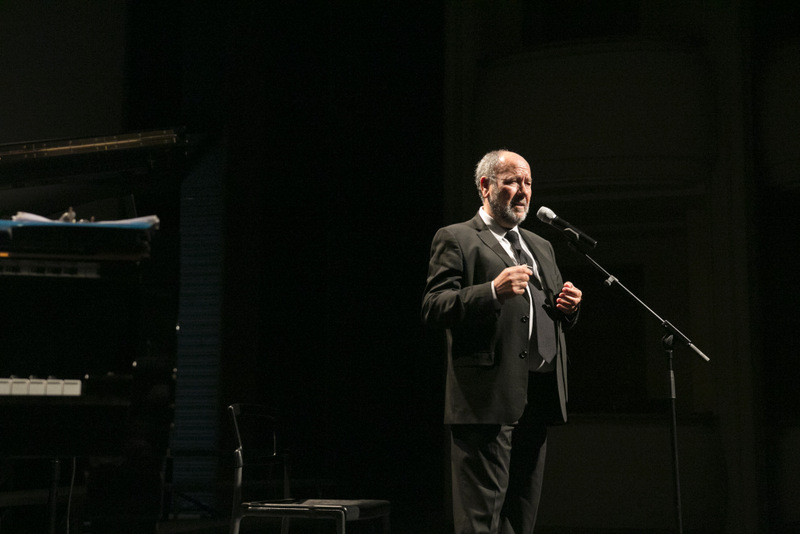 Manuel Deco, pianista y director musical, presentando el espectáculo al público asistente |