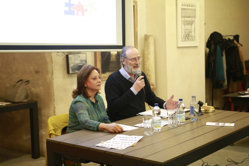 Fernando del Castillo (Vicesecretario de ASY) y Concha Pedrosa (directora de la subasta) dirigiéndose al público asistente |