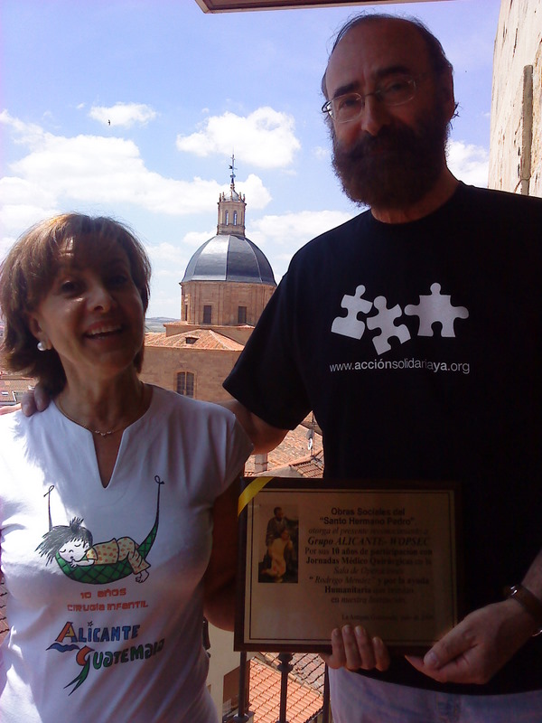 El 22 de mayo de 2010, el Presidente de ASY se trasladó a Salamanca para entrevistarse con Dña. Inmaculada Hernández, perteneciente al grupo de WOPSEC-ALICANTE, para conocerla personalmente y poder mejorar y completar la información que desde hace tiempo Acción Solidaria Ya! y WOPSEC-ALICANTE vienen intercambiando. La conversación se centró en torno al objetivo que ASY ha propuesto a WOPSEC-ALICANTE: colaborar en las Jornadas Solidarias de Cirugía Pediátrica que este grupo lleva realizando desde 1998, en la población de Antigua (Guatemala), en las instalaciones de las Obras Sociales del Hermano Pedro, atendiendo a lo largo del mes de julio, a cuantos niños sin medios económicos puedan ser atendidos y requieran algún tipo de intervención quirúrgica. El Presidente de ASY hizo entrega a Dña. Inmaculada Hernández del documento bancario acreditativo de envío de los fondos presupuestados para sufragar los gastos farmacológicos de analgésicos y anestésicos necesarios para realizar las operaciones quirúrgicas de aproximadamente unos cien niños durante el mes de julio de 2010 en Antigua por un valor de 2.734'22 euros. El Presidente de ASY, invitó a la Dra. Inmaculada Hernández a asistir a la Asamblea General que ASY celebrará el 18 de septiembre de 2010 en Sevilla, para que comparta con todos los socios de ASY las condiciones en las que ejerce su labor y su experiencia personal con los niños en Antigua. WOPSEC-ALICANTE, es equipo médico pediátrico cuyos miembros pertenecen a Alicante, Bilbao y Zaragoza y, que coordinados por el doctor Patricio Llamas, Jefe de Servicio de Cirugía Pediátrica del Hospital General Universitario de Alicante, dedican un mes del verano a la labor altruista y generosa de realizar operaciones quirúrgicas a niños que las necesitan pero cuyas familias carecen de recursos económicos para costearlas. Desde 1998 han ido cada añ o en el mes de julio, excepto el año 2000. Van a Antigua seis o siete personas y en las instalaciones de las Obras Sociales del Hermano Pedro, realizan unas 100 intervenciones aproximadamente. Llevan unos 1.250 niños operados desde que empezaron en 1998. WOPSEC-ALICANTE colabora con la organización internacional WOPSEC ( World Organization of Pediatric Surgery for Emerging Countries) cuyo secretario es el Dr. Cesare Ghinelli, pertenecinete a Medicus Mundi Italia y cuyo campo de acción se centra en países como Colombia, Guatemala y Bolivia. |