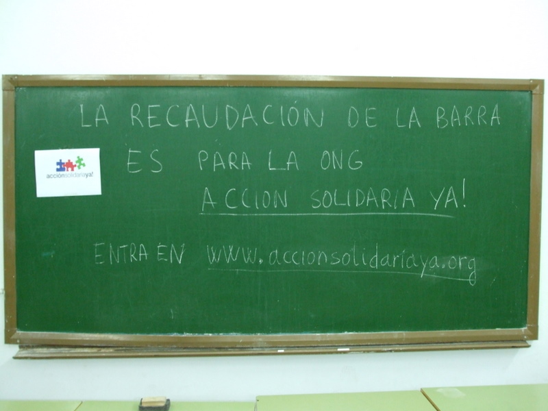 El 5 de septiembre de 2008, Acción Solidaria Ya!, organizó su primera fiesta para recaudar fondos con que impulsar sus proyectos humanitarios. Aprovechando la fiesta-sorpresa que la antigua alumna y amiga del Presidente de ASY le organizó con ocasión de su reciente jubilación, los miembros de ASY, montaron en el recinto del gimnasio del Instituto de Educación Secundaria Pino Montano, una barra de bar con un servicio completo de bebidas y tapas, que ayudaron a pasar una agradable velada con los antiguos alumnos y profesores asistentes al acto, a la vez que los fondos recaudados por primera vez, servirían para impulsar algún proyecto que nuestra ONG, Acción Solidaria Ya!, se había propuesto. El total de los fondos obtenidos fue de 543'50 €. |