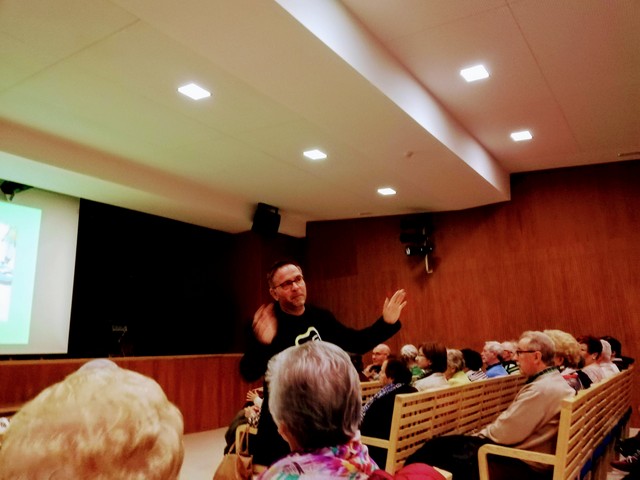 El director Pablo Málaga dirigiéndose al público |